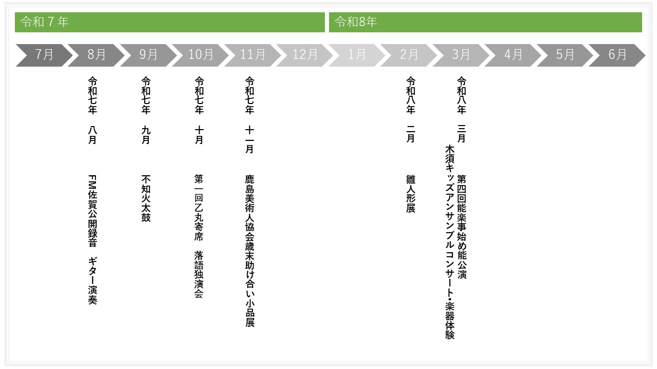 西川眞理子が能舞台の再開を決定。 鹿島市文化祭謡曲部門や各謡曲同好会の大会会場として活用を再開(能楽師の関与はなし)。 |