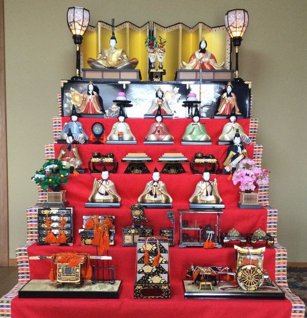 吉田ミヤの妹・中島ヤエにより能舞台のために20年歳月をかけて手作りした雛人形です。人形が纏っている衣は一枚ずつ絹糸から織られたものを裁断したものを木目込み作られました。「手作りの佐賀錦の衣を着た雛人形七段飾り」は毎年2月中旬から4月上旬まで一般公開しております。