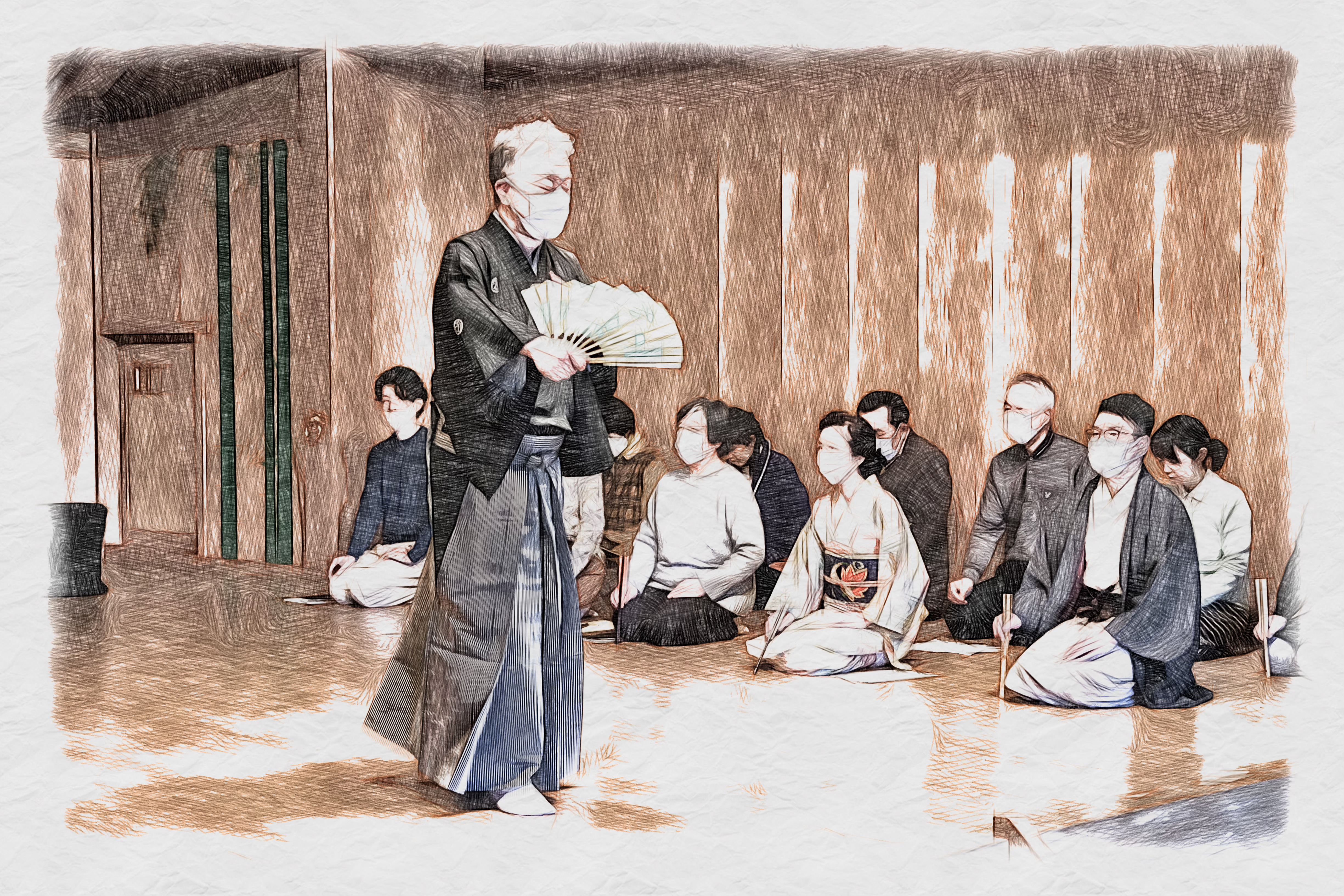 先生と私の出会いは2021年。前年に先生が吉田能舞台を訪問して下さった時は、私は残念ながらお会いする事ができず。叔父と叔母が「あの~サムさんを教えておられる先生だって~」と興奮して話すが、私にとっては「サムさん??」だった。
