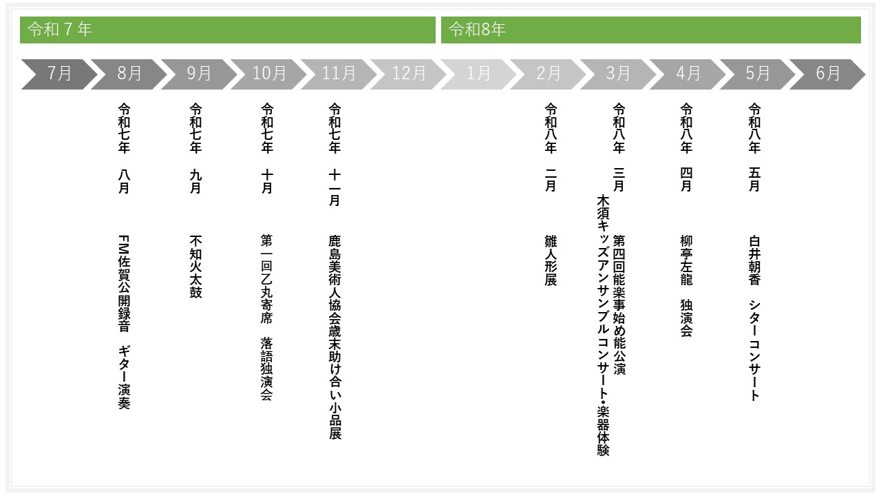 西川眞理子が能舞台の再開を決定。 鹿島市文化祭謡曲部門や各謡曲同好会の大会会場として活用を再開(能楽師の関与はなし)。 |